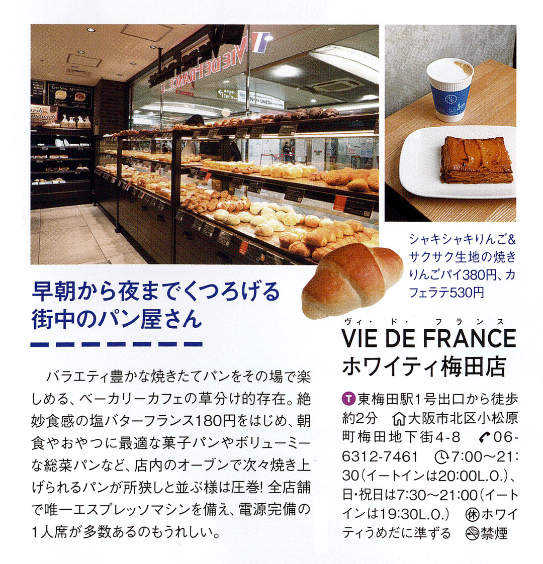 Osaka Metroのフリーマガジン「Metrono(メトロノ)Vol.15」で、ヴィ・ド・フランス ホワイティ梅田店をご紹介いただきました。Osaka Metro全駅のパンフレットラックで無料配布されています。