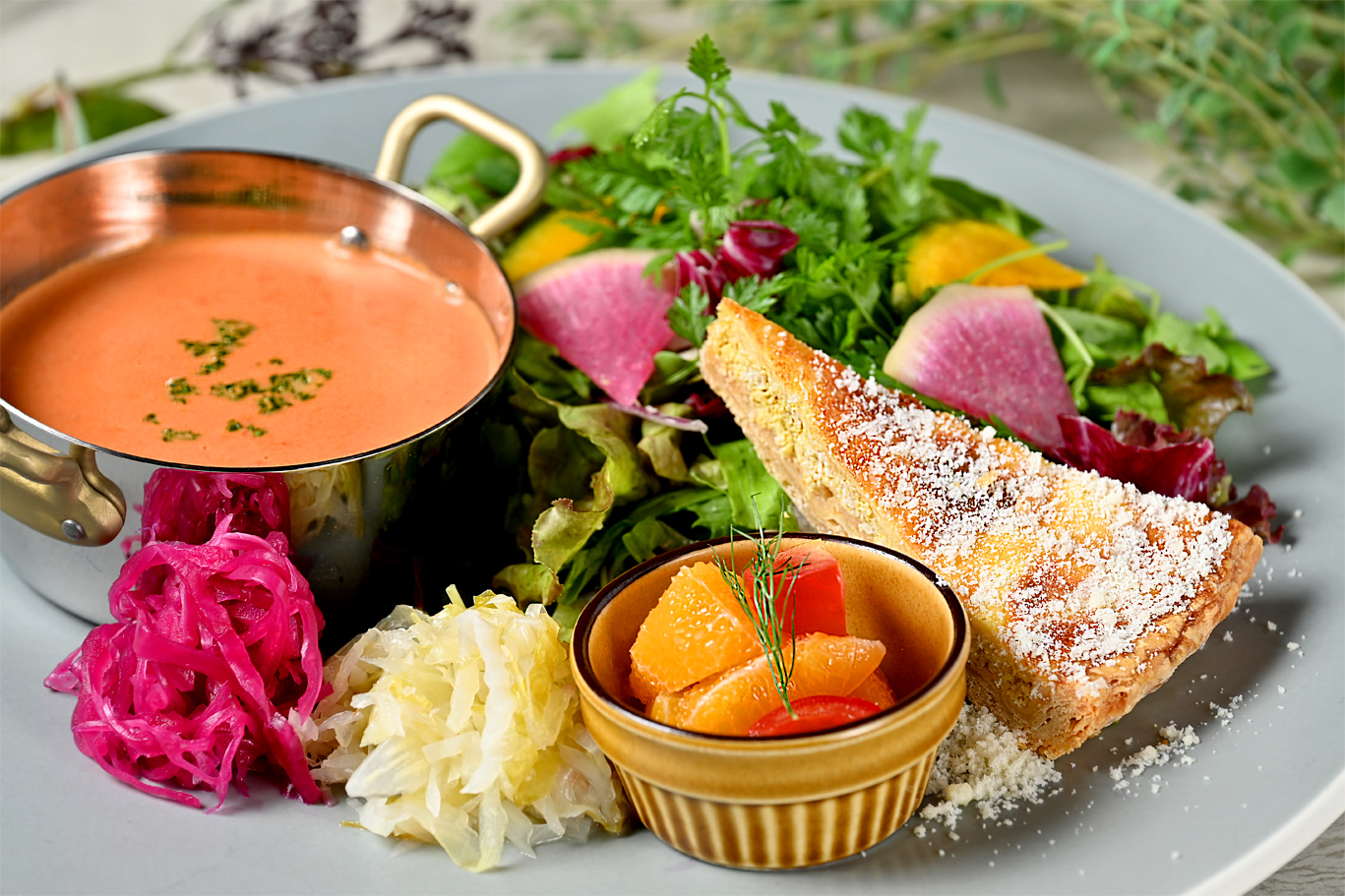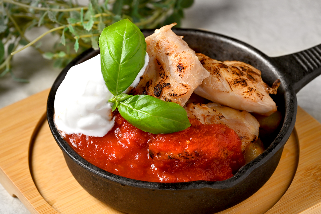 グリルチキン トマトとバジルのソース サワークリーム添え