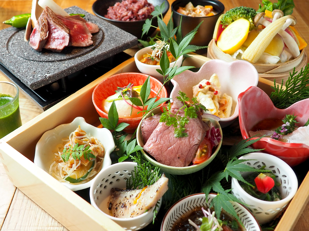 慶祝膳(1/3・1/4 限定) 彩り豊かな9種の小料理に和牛の溶岩プレートを添えた、新年のお祝いにぴったりの特別メニューです。