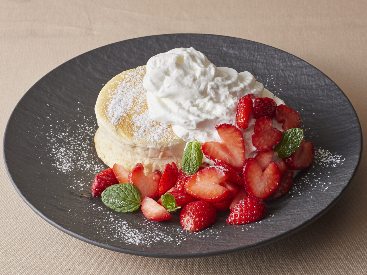 冷たい風に身体が縮こまりがちなこの時期は、旬のいちごで美味しくビタミン補給しませんか?この冬限定でお届けするのは、真っ赤ないちごを贅沢にあしらった華やかなフォンダン仕立てのパンケーキ。いちごの鮮やかな酸味と焼き立てのパンケーキの甘い香りに包まれる、癒やしのひとときをお届けします。